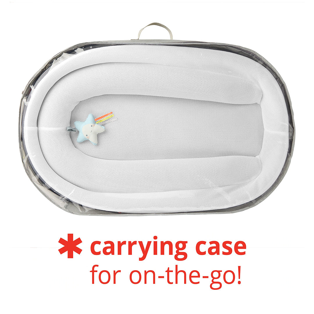 Whether you are at home, on vacation or visiting your grandparents, the Baby Nest Lounger from Skip Hop is easily transported from room to room or place to place. The baby nest lounger prevents baby from rolling out and lets your baby rest secure and serene. You can move your little one everywhere you go in total safety.